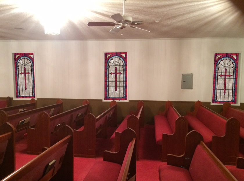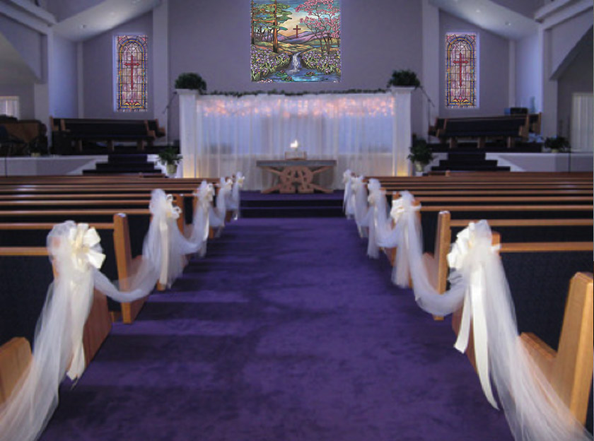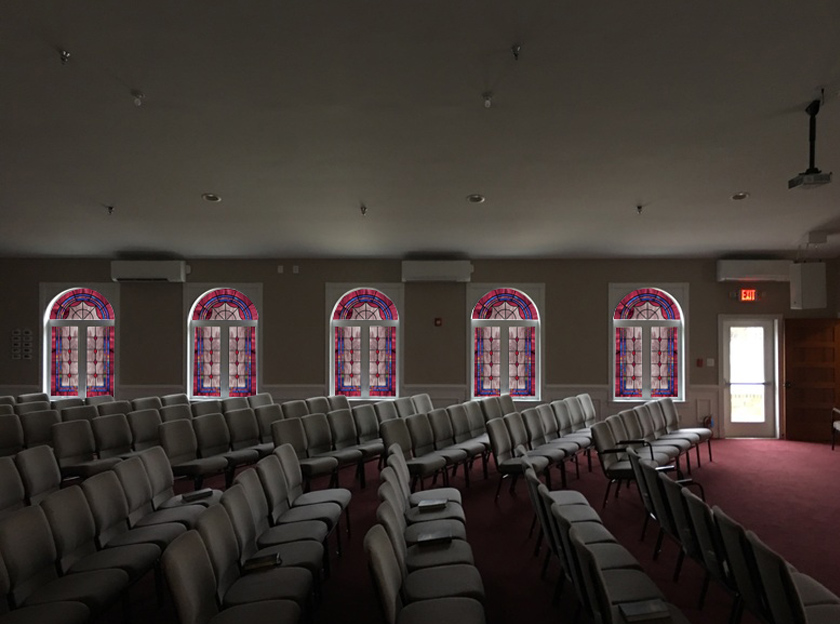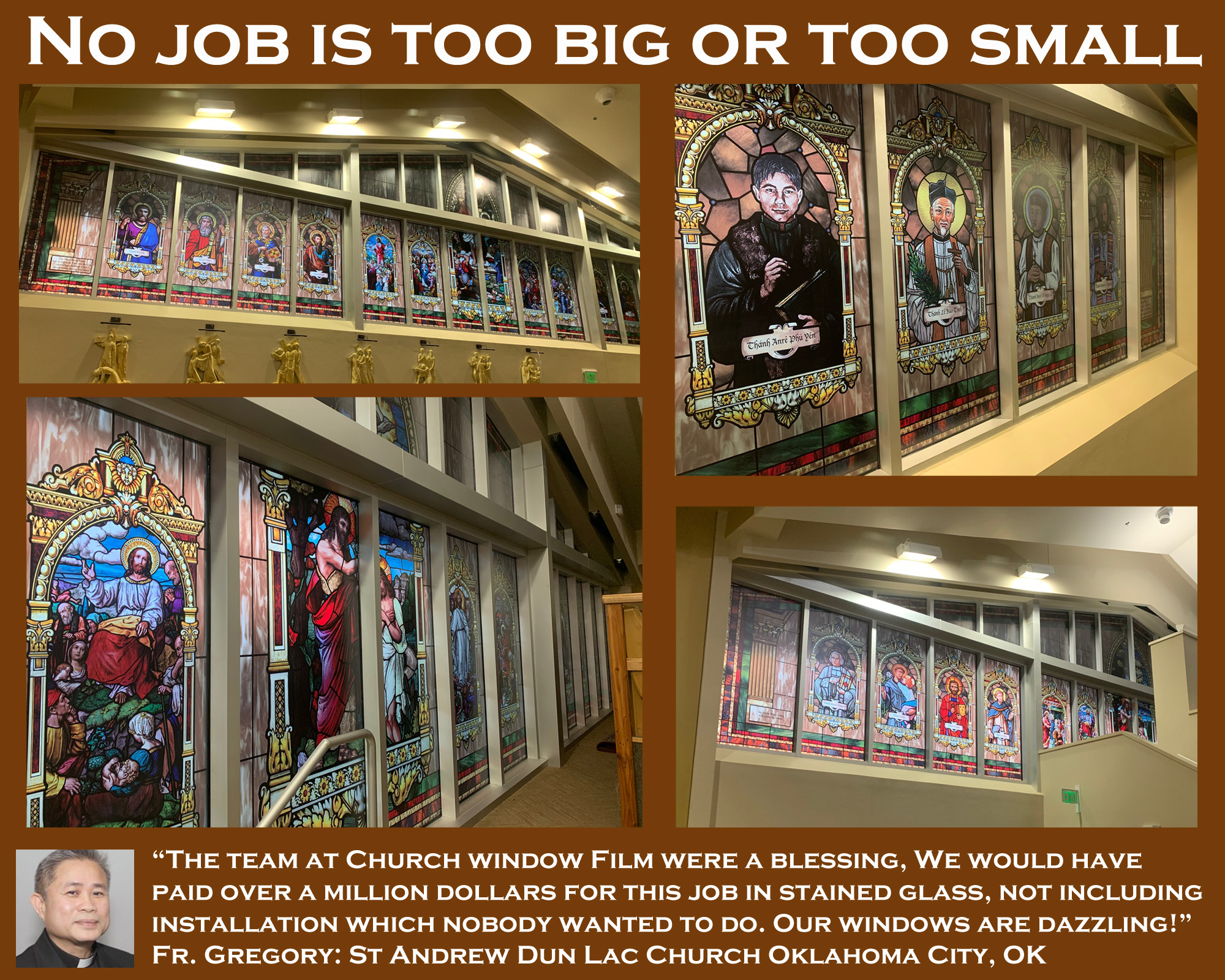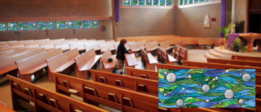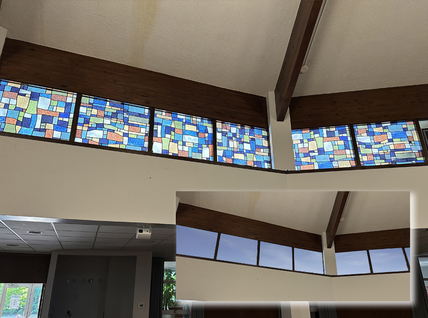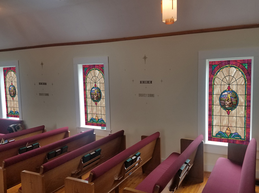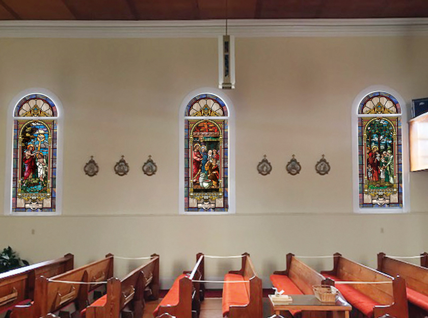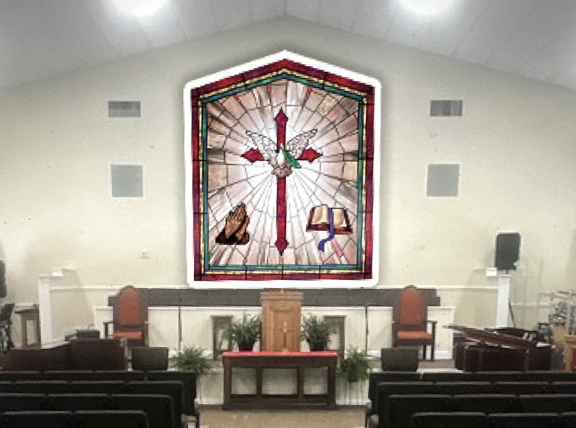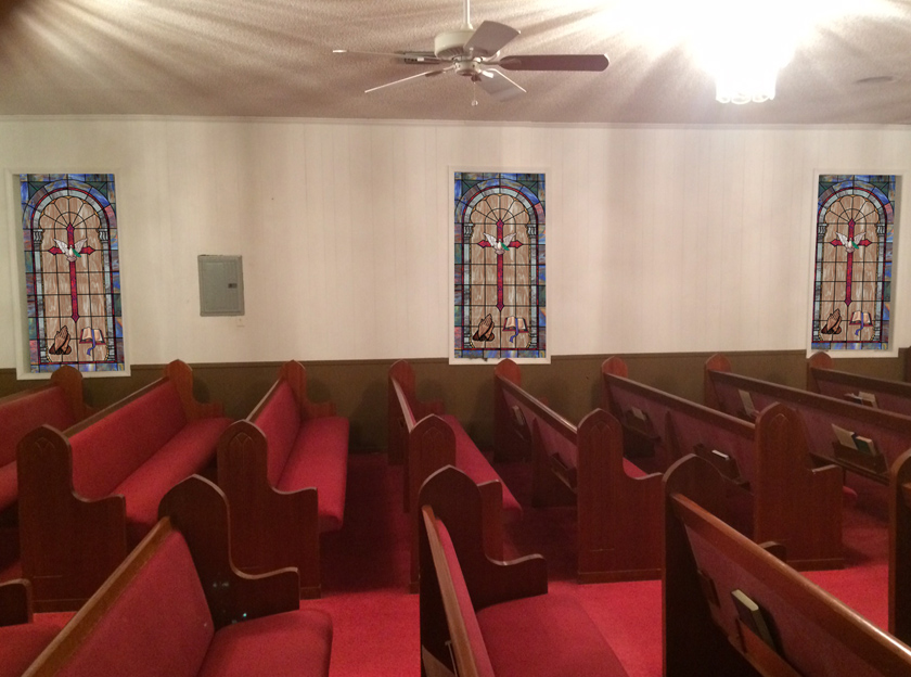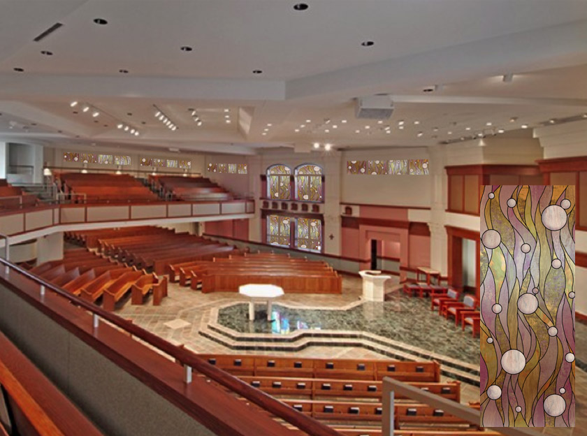 Our Church Window Film® designs transform spaces from small to large, arched or squared, double hung or solid, in any type of church or building. View our gallery photos below, highlighting various ways in which our films can be used, use these pictures for inspiration. All our designs can be transformed and configured into your size and shape window, CALL US at 800-291-3739 with any questions. Click HERE to view our NEW PINTEREST Page!!!