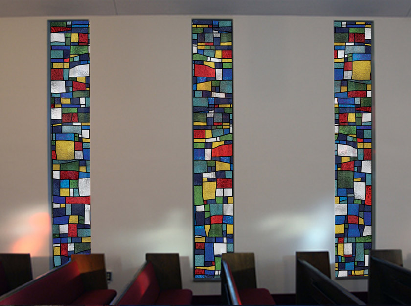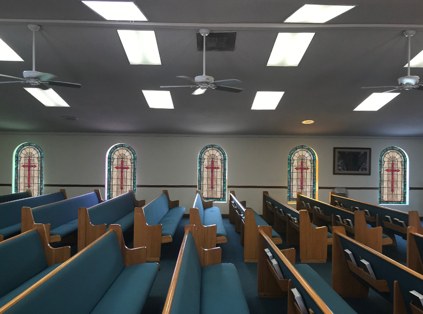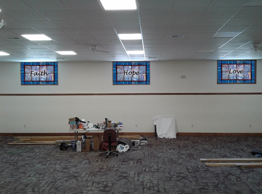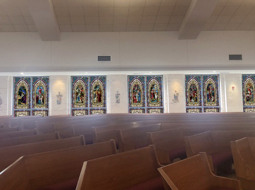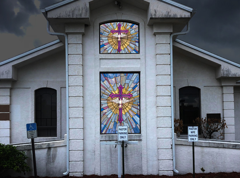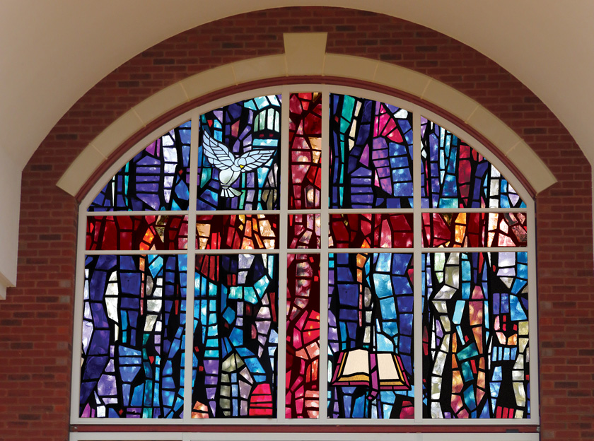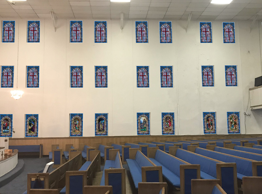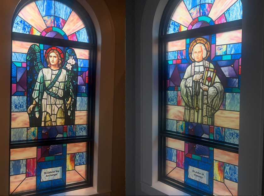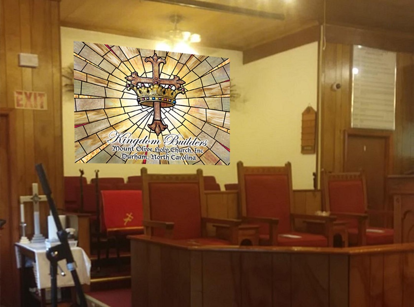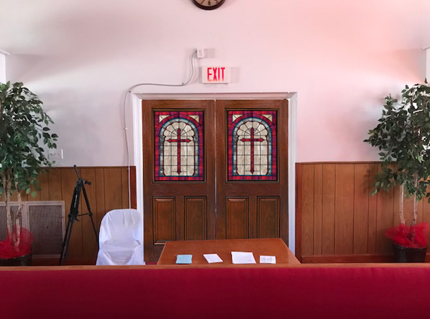 Our Church Window Film® designs transform spaces from small to large, arched or squared, double hung or solid, in any type of church or building. View our gallery photos below, highlighting various ways in which our films can be used, use these pictures for inspiration. All our designs can be transformed and configured into your size and shape window, CALL US at 800-291-3739 with any questions. Click HERE to view our NEW PINTEREST Page!!!