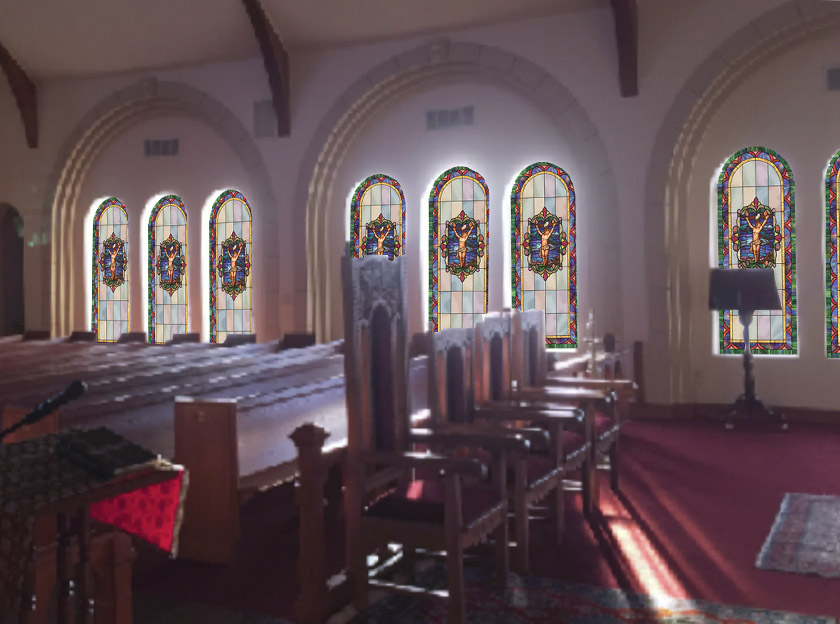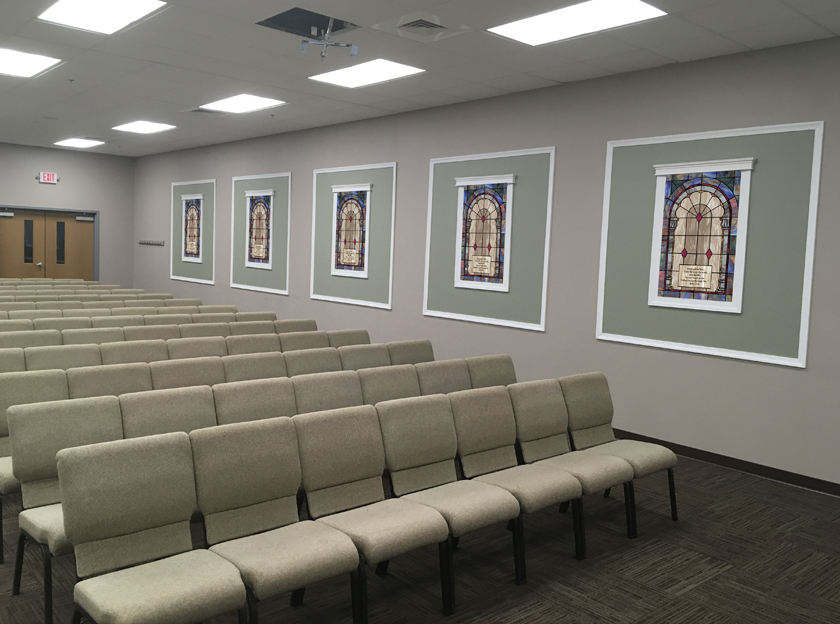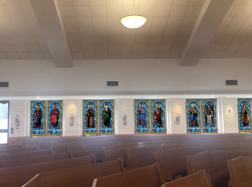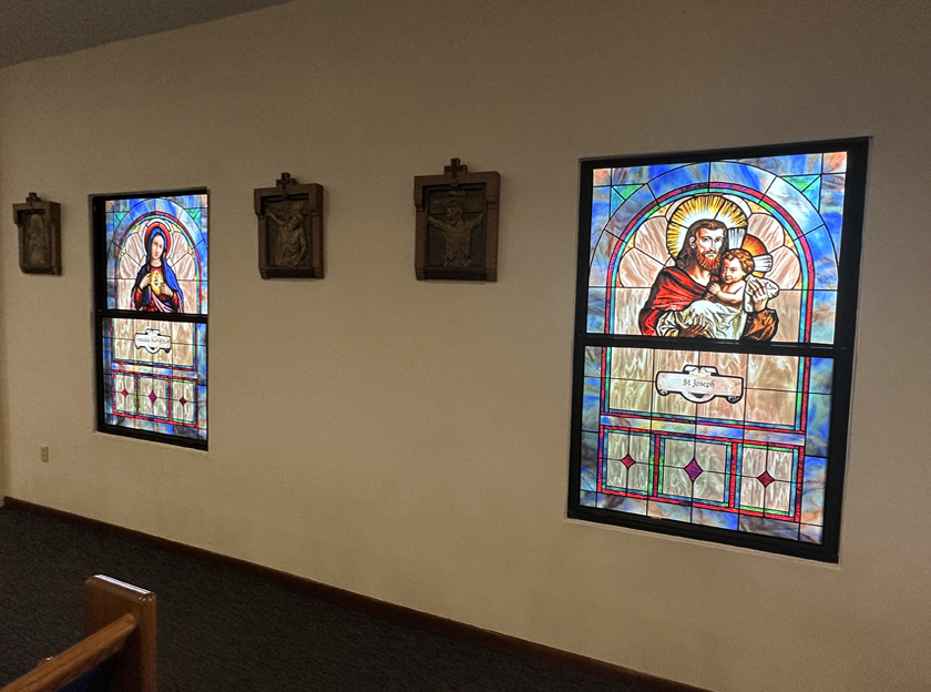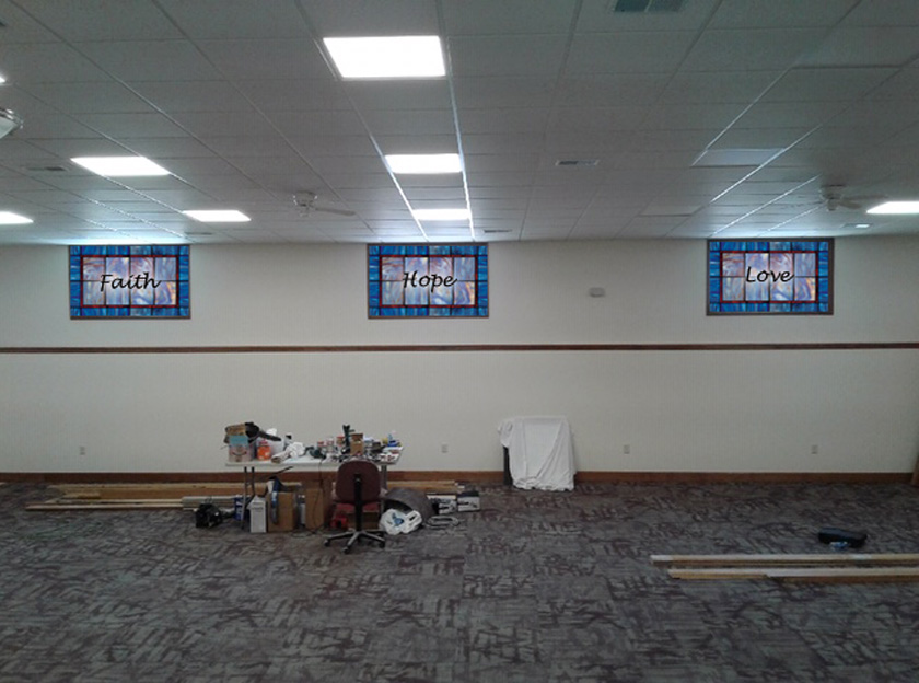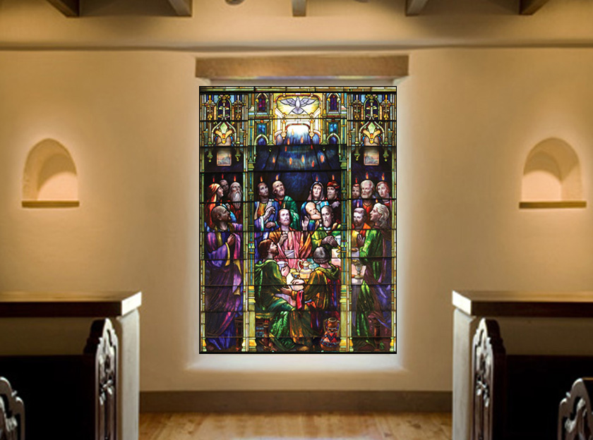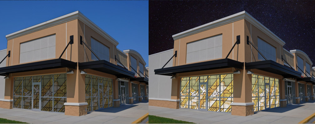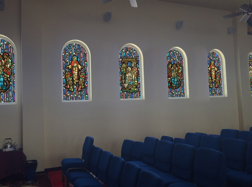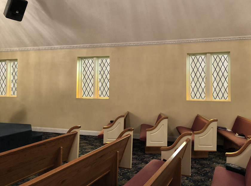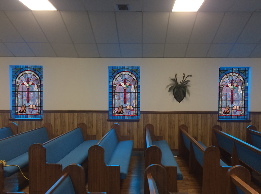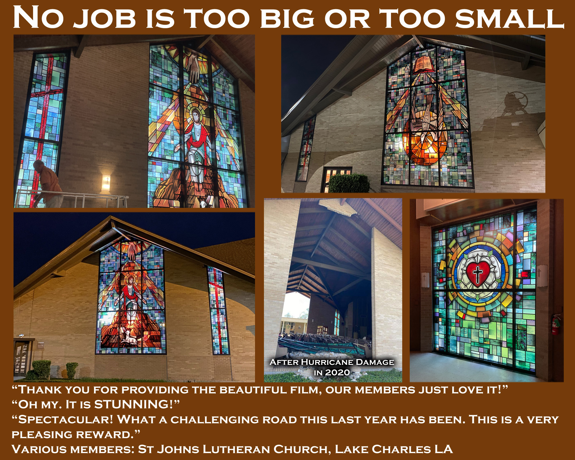 Our Church Window Film® designs transform spaces from small to large, arched or squared, double hung or solid, in any type of church or building. View our gallery photos below, highlighting various ways in which our films can be used, use these pictures for inspiration. All our designs can be transformed and configured into your size and shape window, CALL US at 800-291-3739 with any questions. Click HERE to view our NEW PINTEREST Page!!!