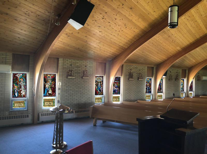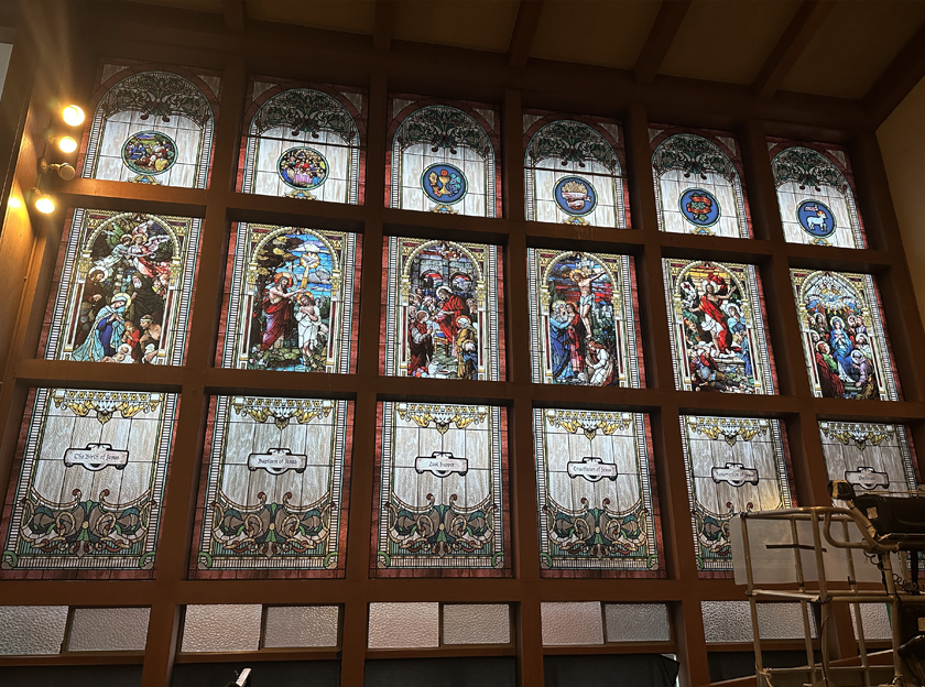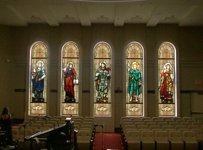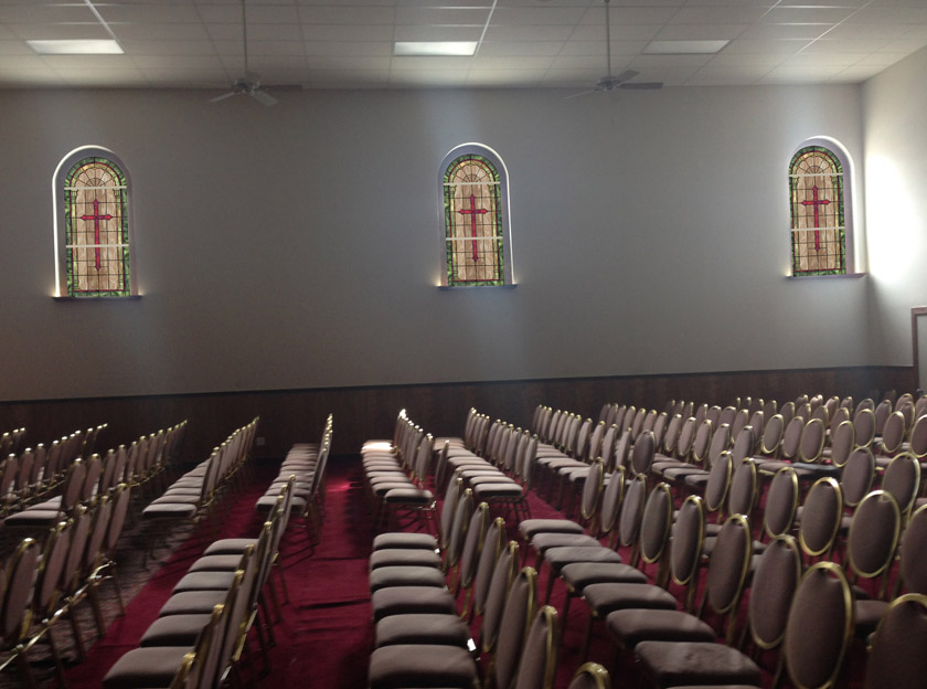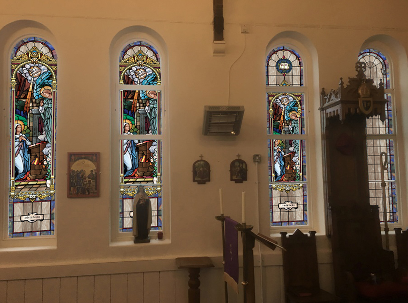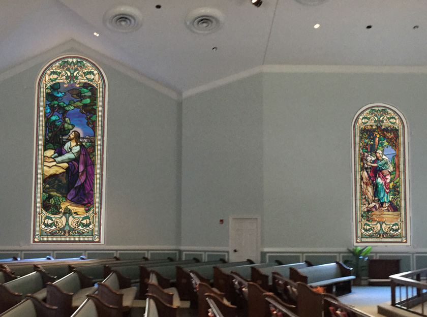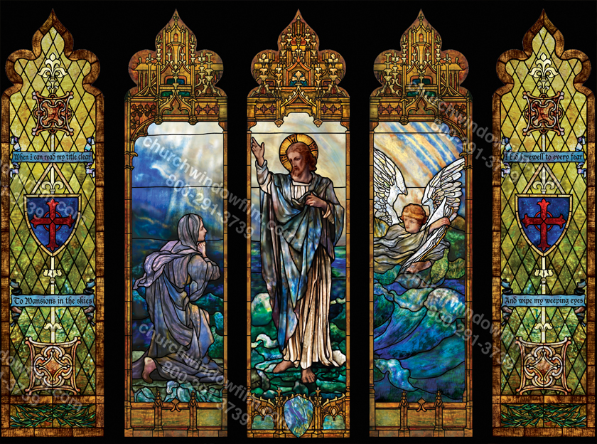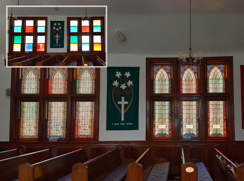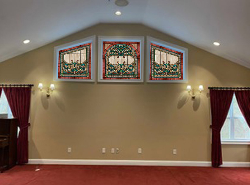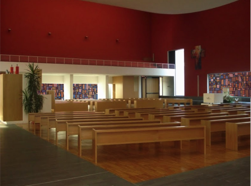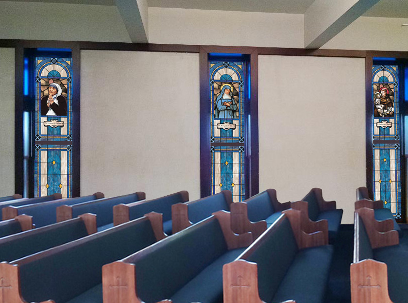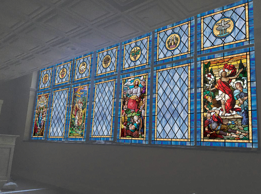 Our Church Window Film® designs transform spaces from small to large, arched or squared, double hung or solid, in any type of church or building. View our gallery photos below, highlighting various ways in which our films can be used, use these pictures for inspiration. All our designs can be transformed and configured into your size and shape window, CALL US at 800-291-3739 with any questions. Click HERE to view our NEW PINTEREST Page!!!