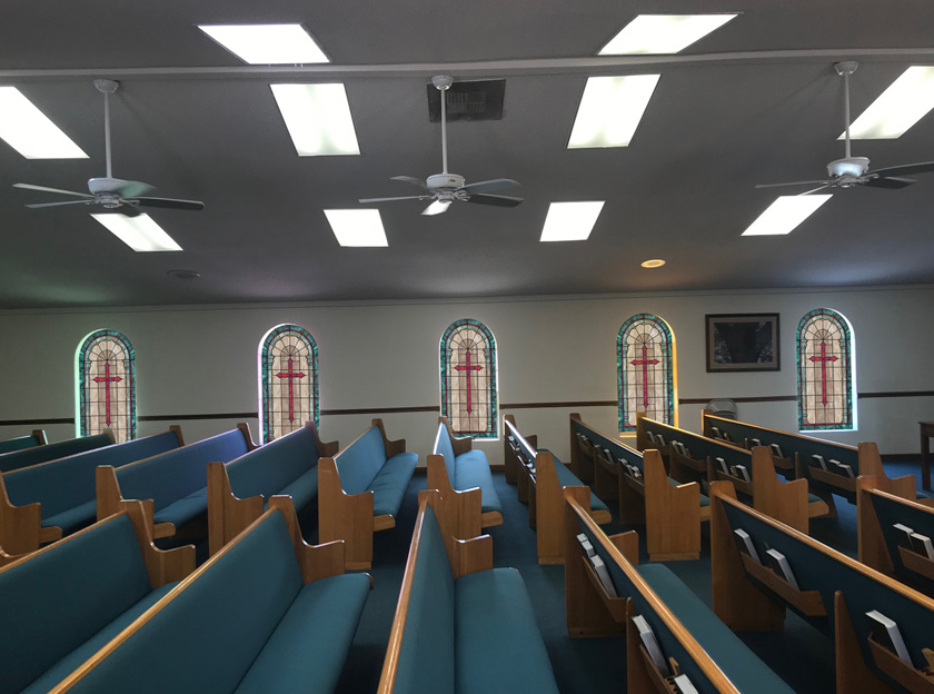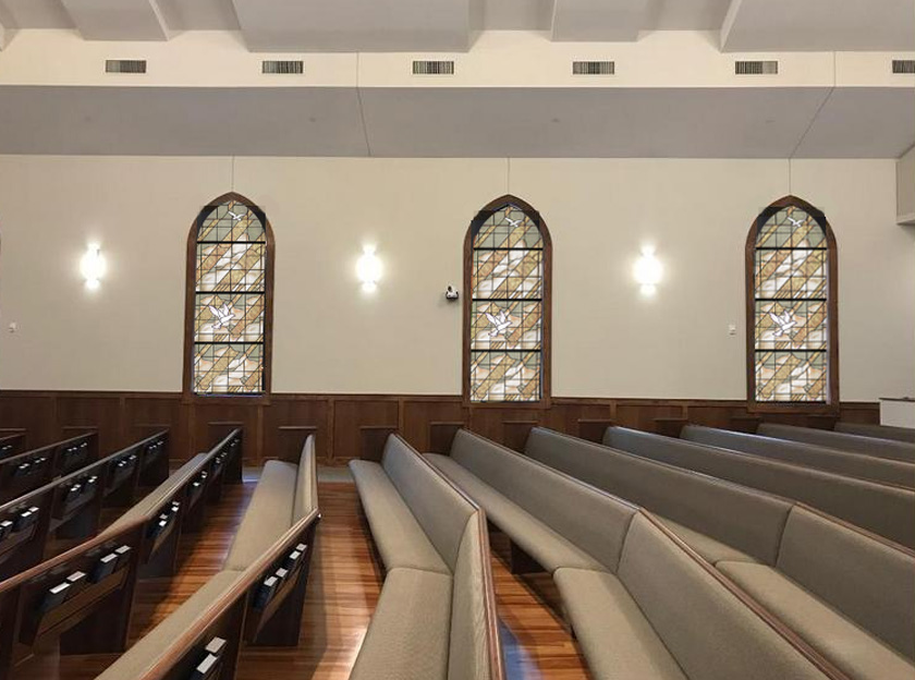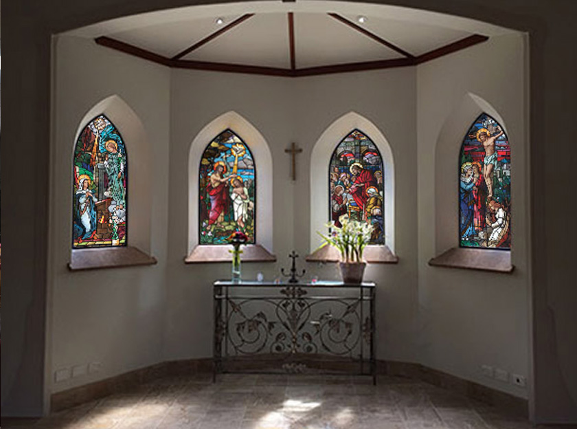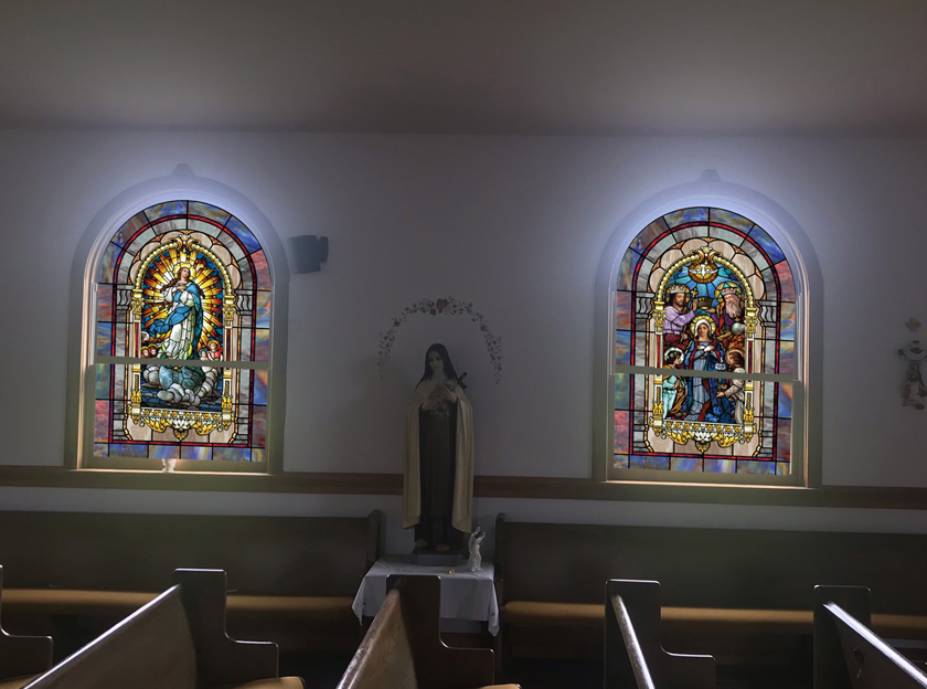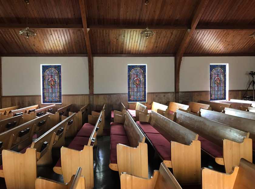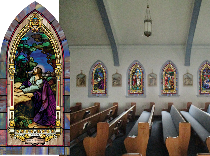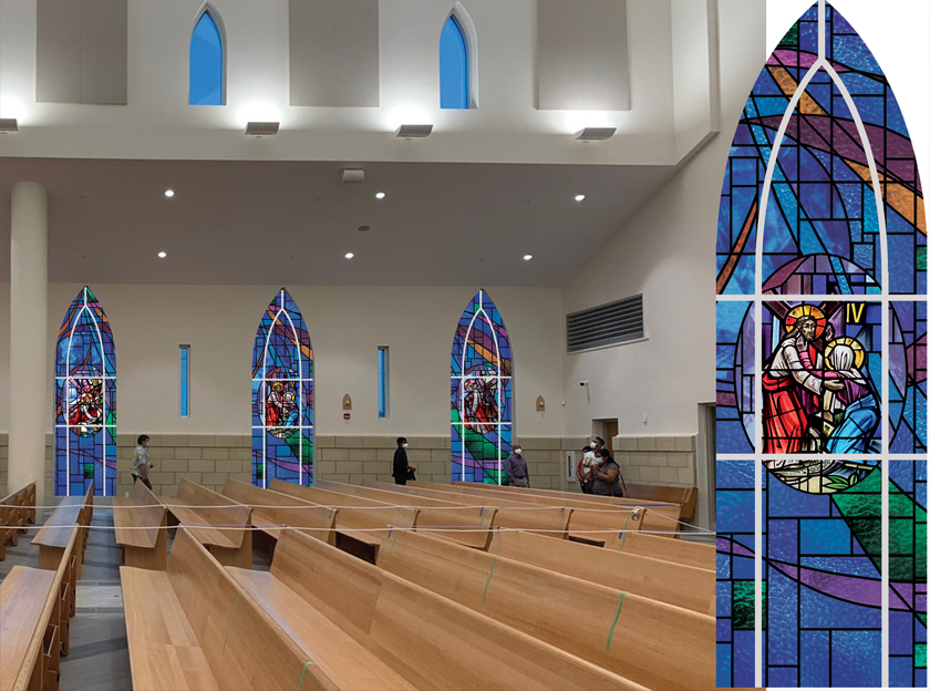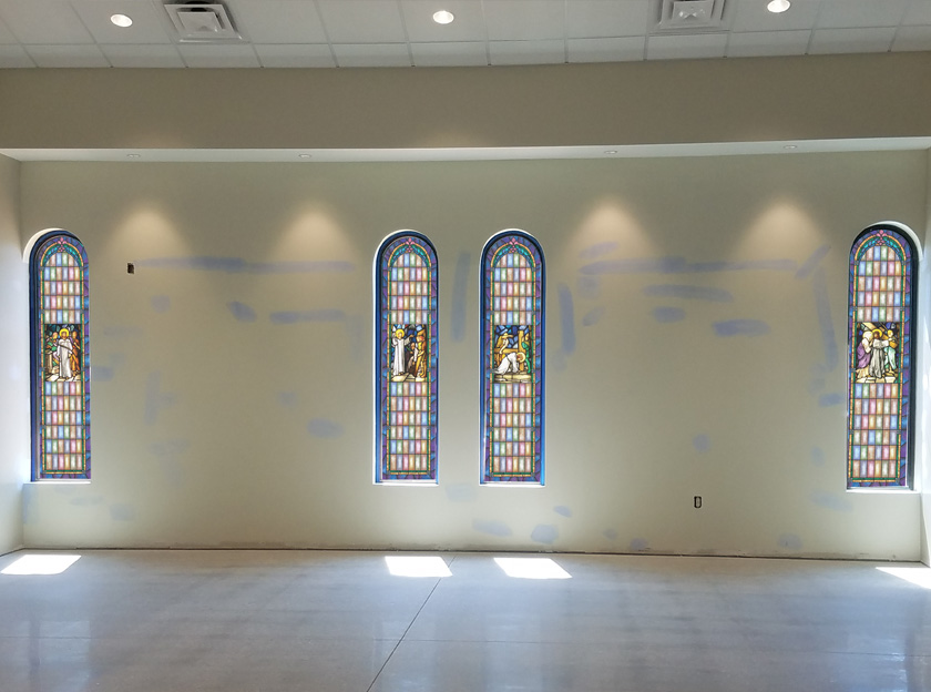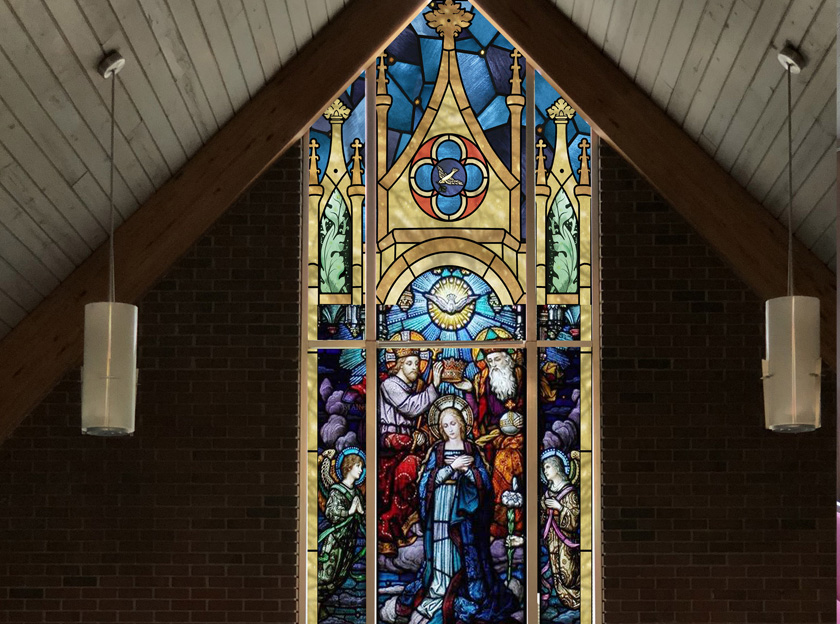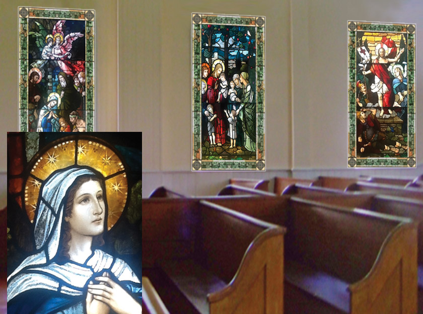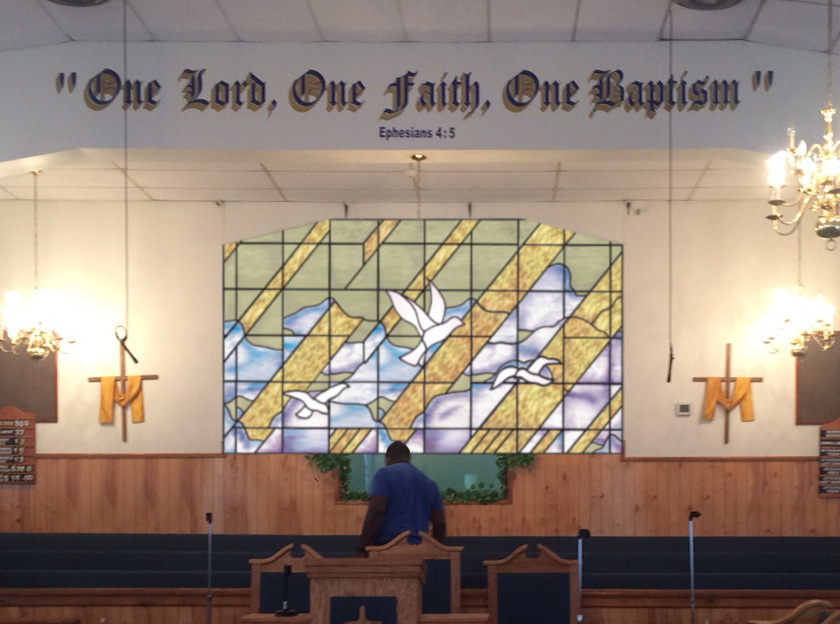 Our Church Window Film® designs transform spaces from small to large, arched or squared, double hung or solid, in any type of church or building. View our gallery photos below, highlighting various ways in which our films can be used, use these pictures for inspiration. All our designs can be transformed and configured into your size and shape window, CALL US at 800-291-3739 with any questions. Click HERE to view our NEW PINTEREST Page!!!