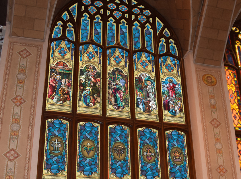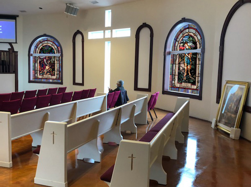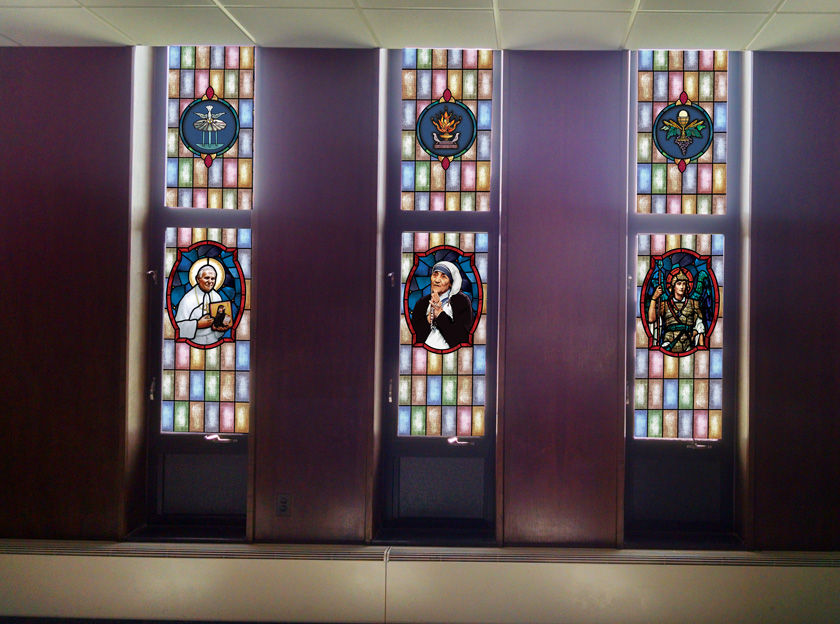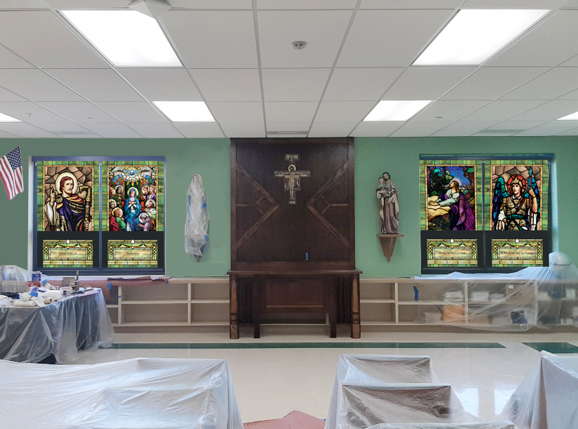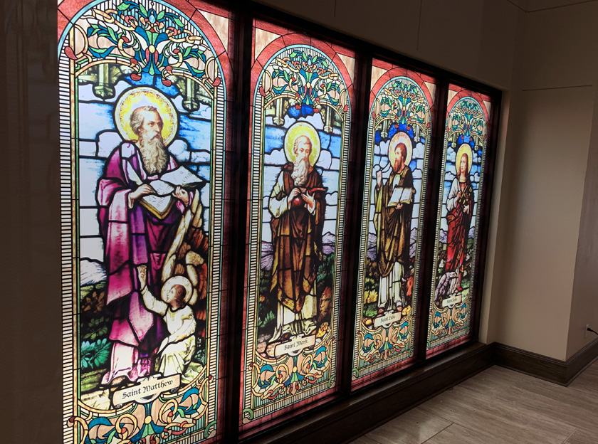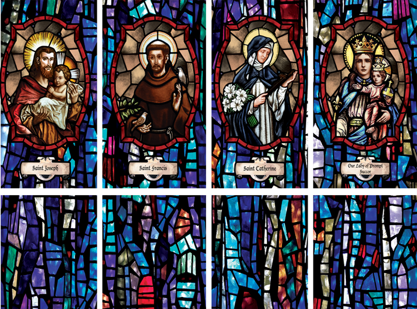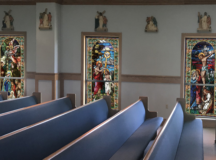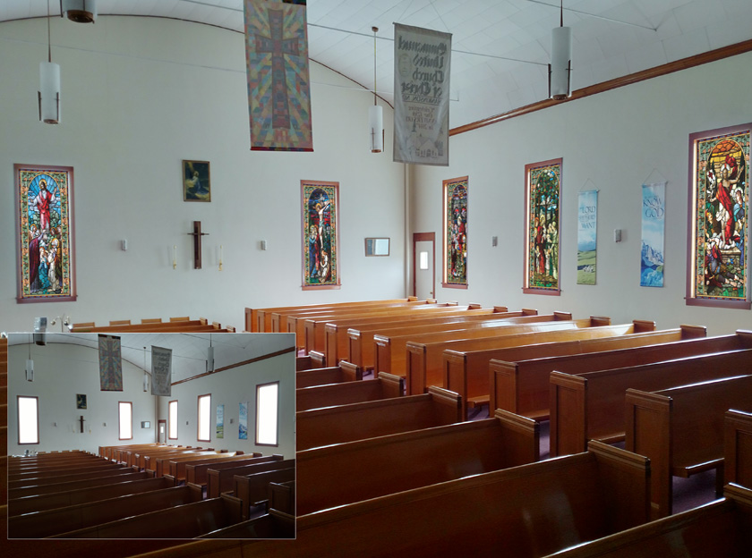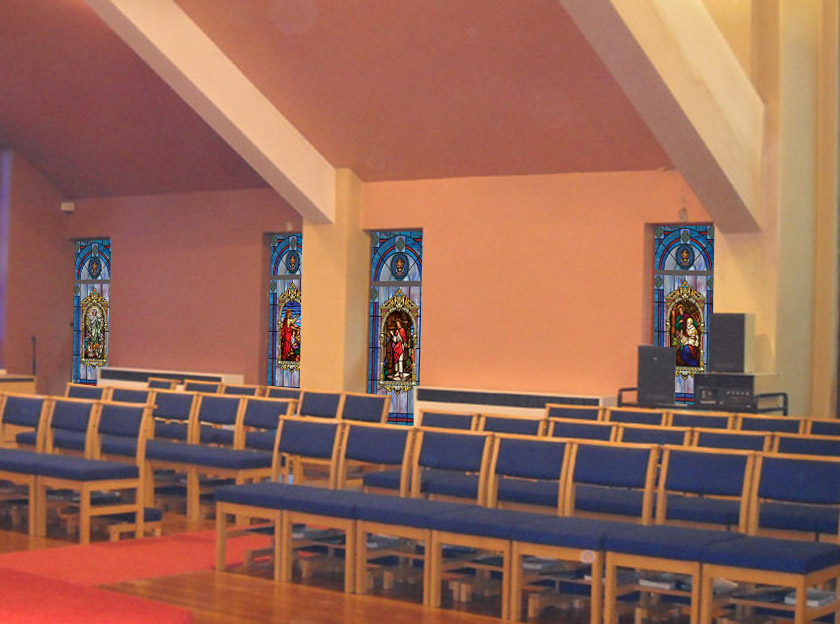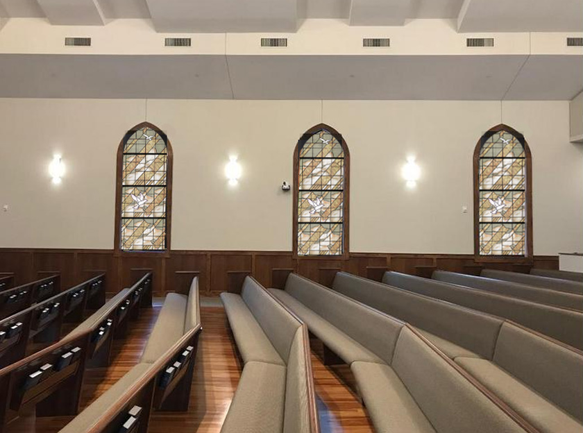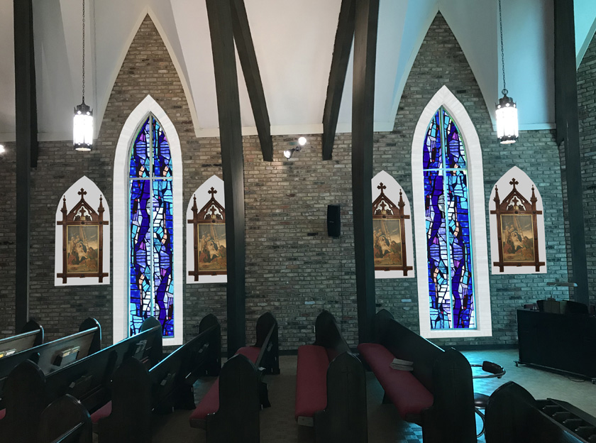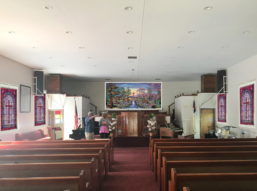 Our Church Window Film® designs transform spaces from small to large, arched or squared, double hung or solid, in any type of church or building. View our gallery photos below, highlighting various ways in which our films can be used, use these pictures for inspiration. All our designs can be transformed and configured into your size and shape window, CALL US at 800-291-3739 with any questions. Click HERE to view our NEW PINTEREST Page!!!